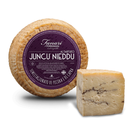 Formaggio a pasta semicotta la cui forma caratteristica è dovuta all’utilizzo di stampi di giunco realizzati a mano secondo antiche tradizioni sarde. L’equilibrato rapporto dei componenti utili alla nutrizione umana fanno di questo formaggio un prodotto indicato sotto l’aspetto dietro-terapeutico. Questo particolare Juncu è affinato alle vinacce.