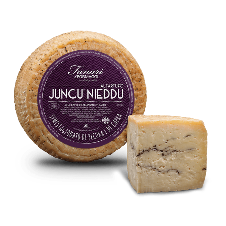 Formaggio a pasta semicotta la cui forma caratteristica è dovuta all’utilizzo di stampi di giunco realizzati a mano secondo antiche tradizioni sarde. La particolarità di questo formaggio viene ulteriormente esaltata dall’aggiunta di tartufo e olio aromatizzato al tartufo.