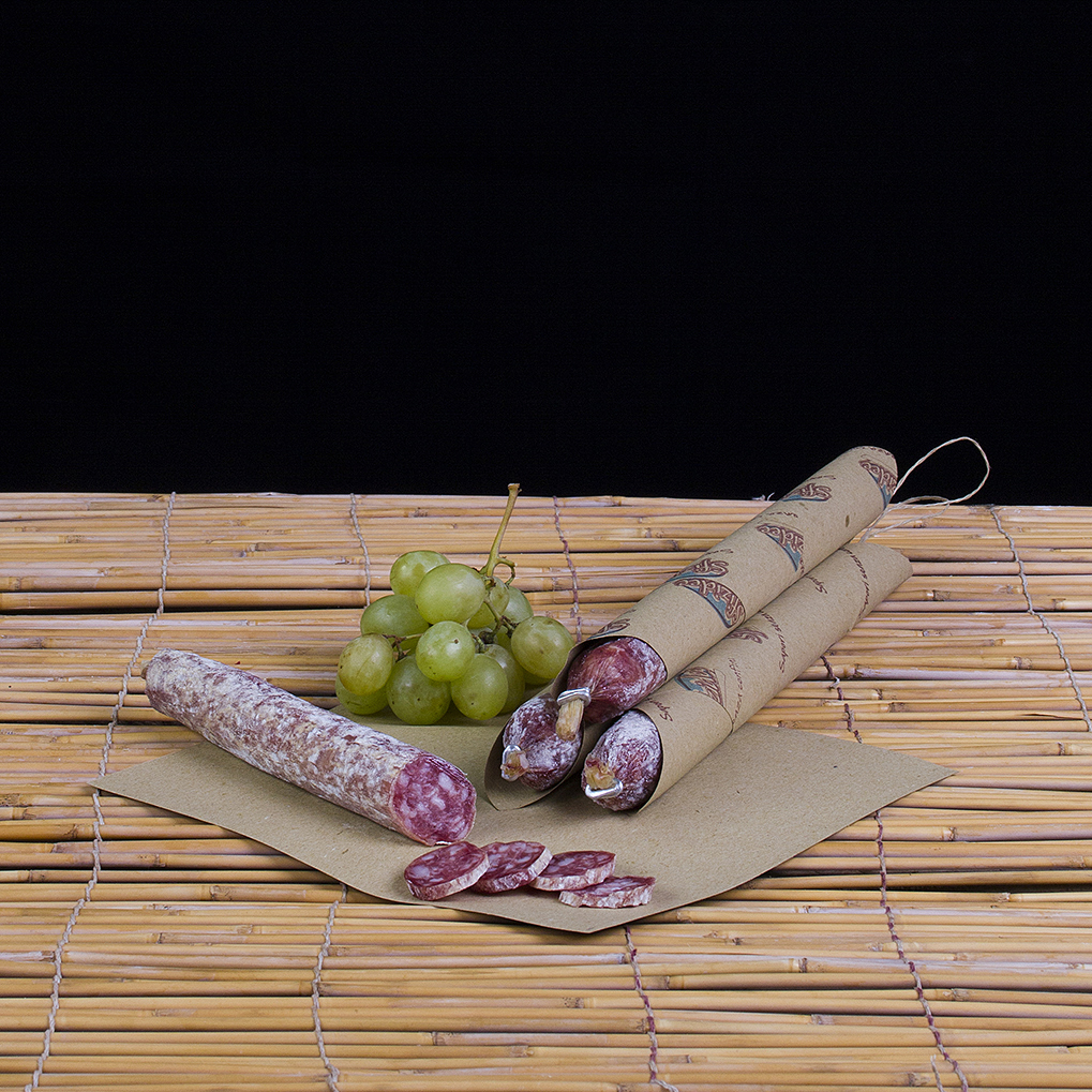 La grana di macinatura è grossa (8 mm) e viene insaccato in budella naturali.