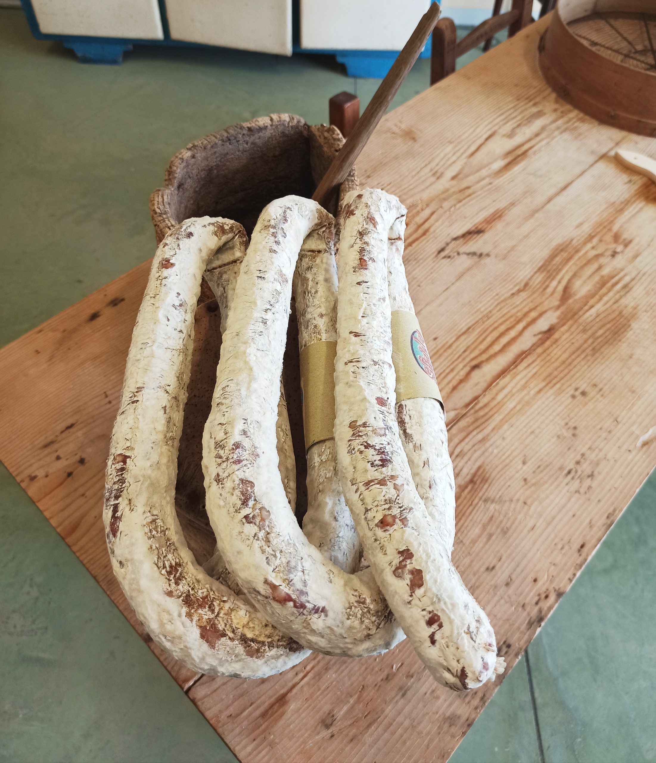 Il Torcigliotto è un nostro prodotto tradizionale, salame di grana medio-fine, gusto dolce e dalla tipica forma a serpente.