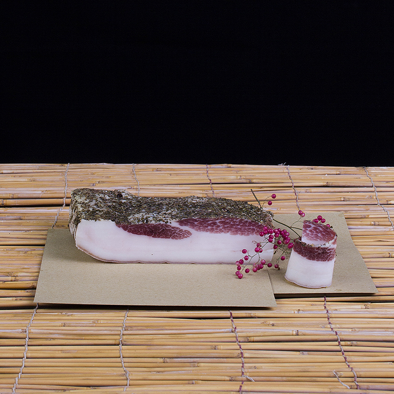 Lardo di alta qualità, selezionato da suini pesanti ; accuratamente lavorato e stagionato per ottenere un prodotto particolarmente appetitoso e gradevole.